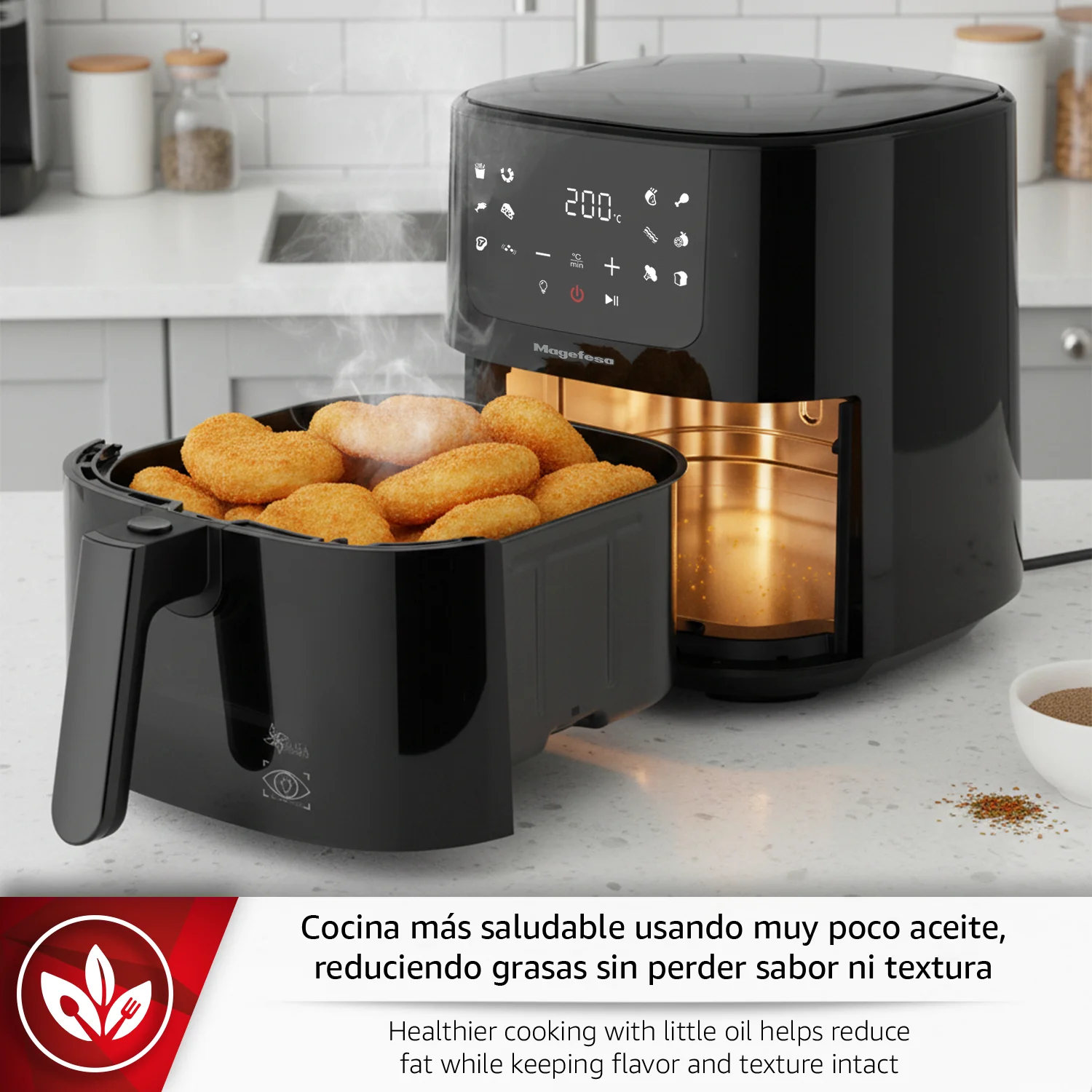 COCINA SALUDABLE: La MAGEFESA ALISIA freidora de aire permite preparar tus platos favoritos con muy poco aceite, reduciendo grasas y calorías sin renunciar al sabor. Ideal para quienes buscan una alimentación más saludable sin complicaciones ni renuncias en la cocina.