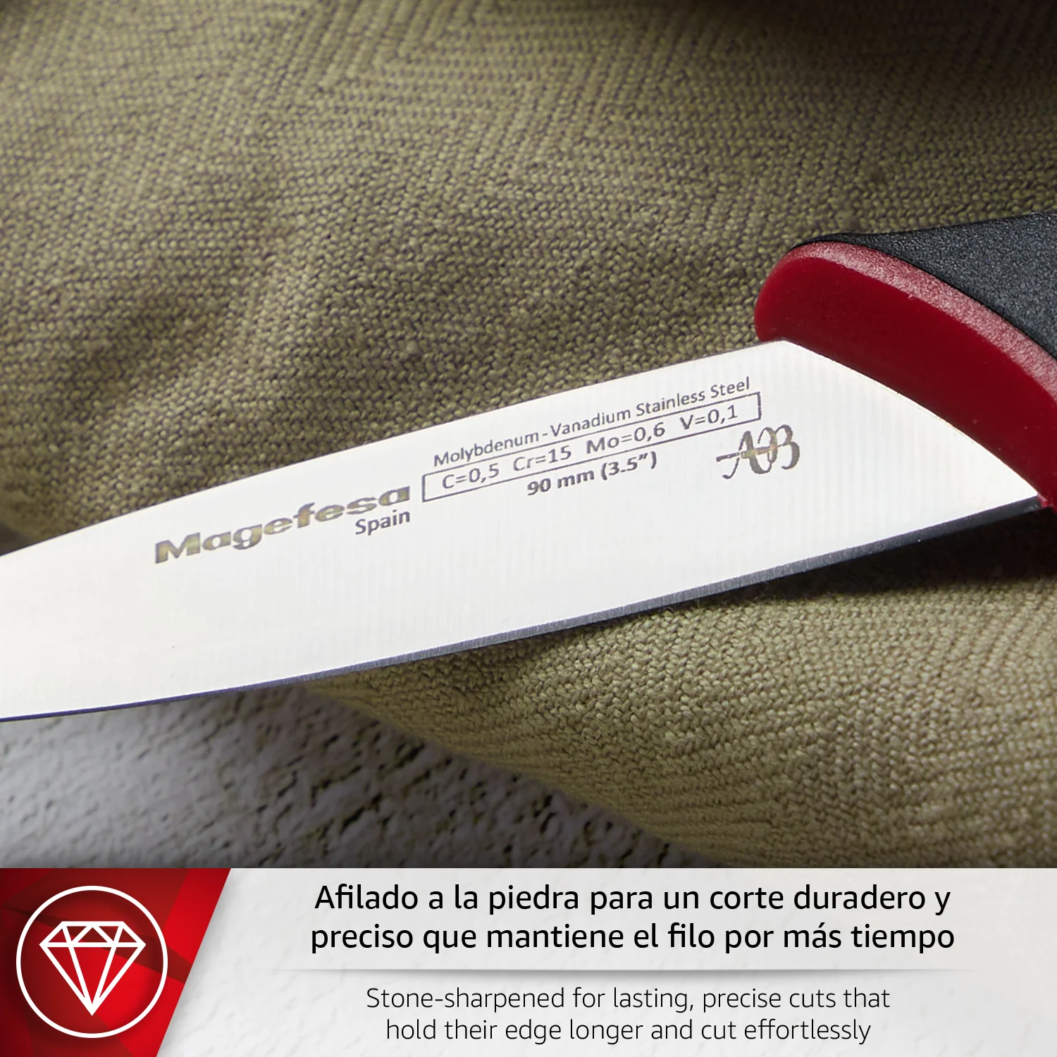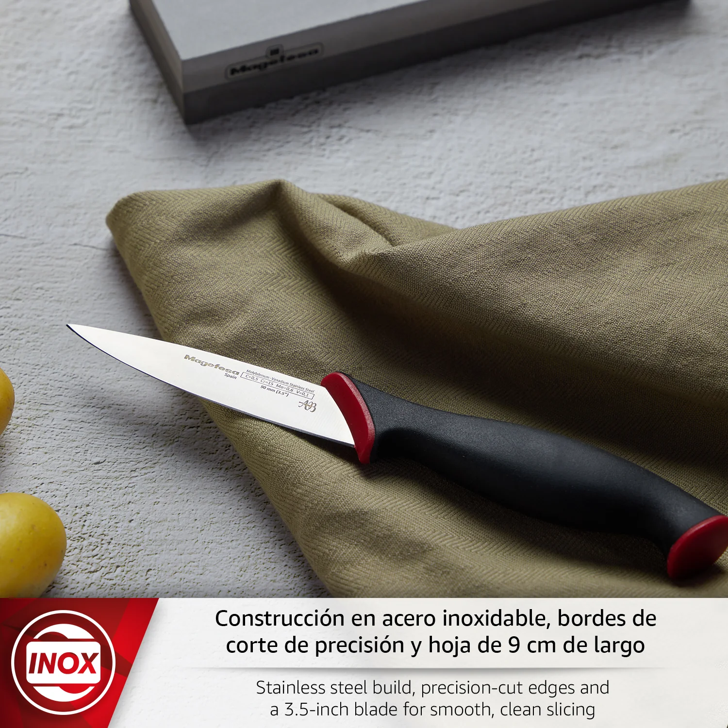 Mejora tu precisión en la cocina con este MAGEFESA AB cuchillo pelador de 9 cm, diseñado para lograr cortes finos y exactos en frutas y verduras. Su filo de alta precisión te permite trabajar con detalle y conseguir resultados dignos de un profesional en cada preparación.