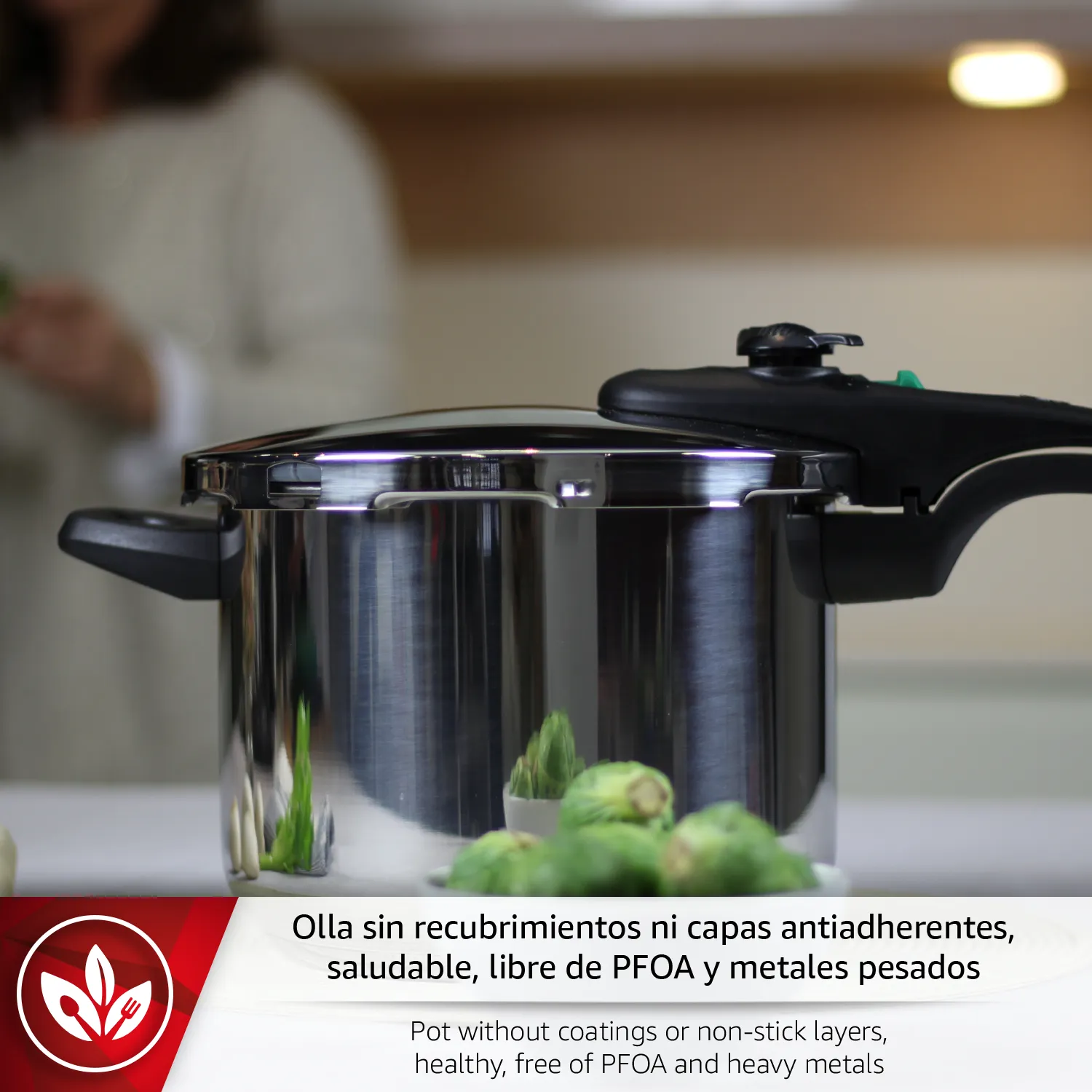 Nuestra olla mantiene las vitaminas y minerales de los alimentos, lo que se traduce en comidas sabrosas y nutritivas para toda la familia. Superficie interior y exterior en acero inoxidable evita que los alimentos se peguen y facilita la limpieza.