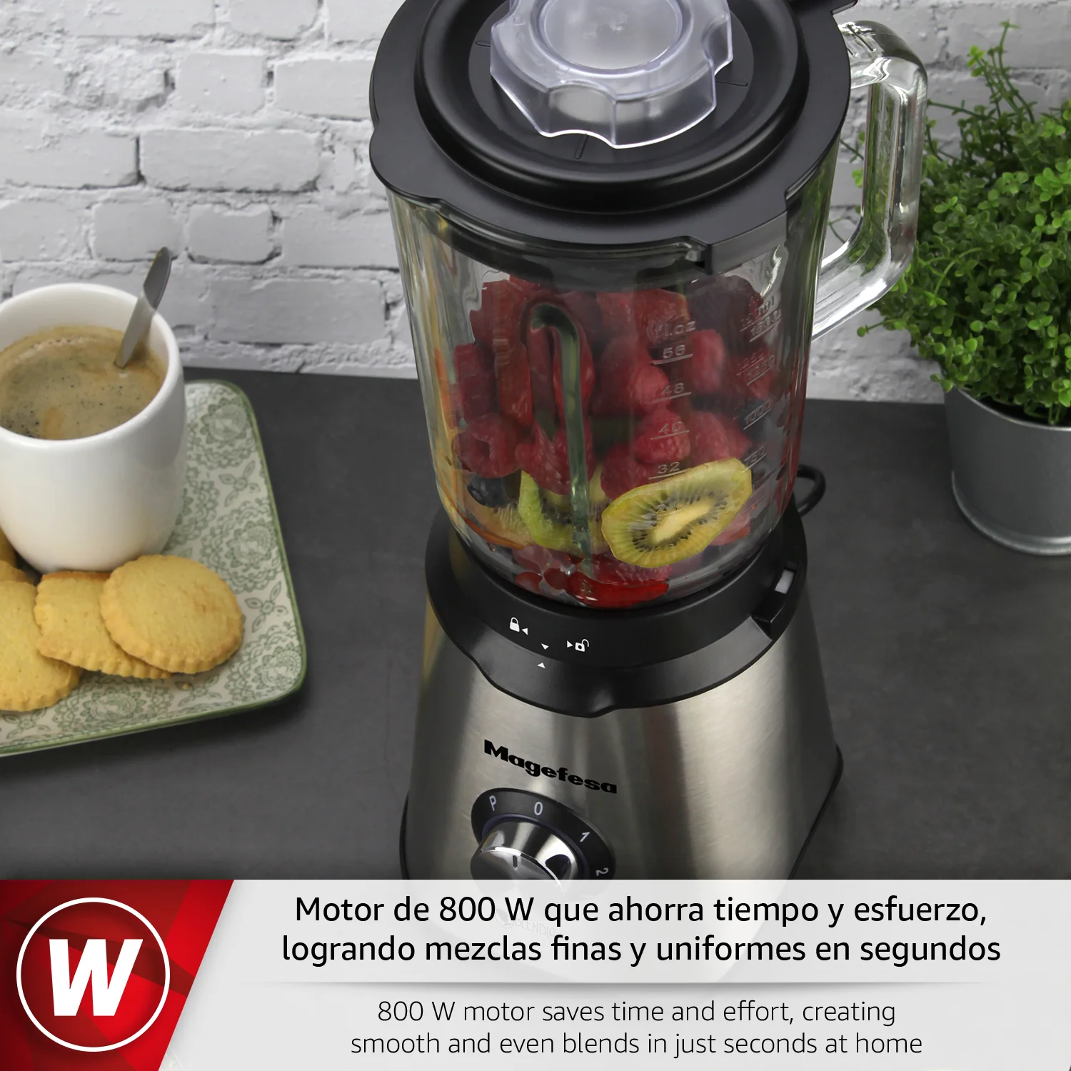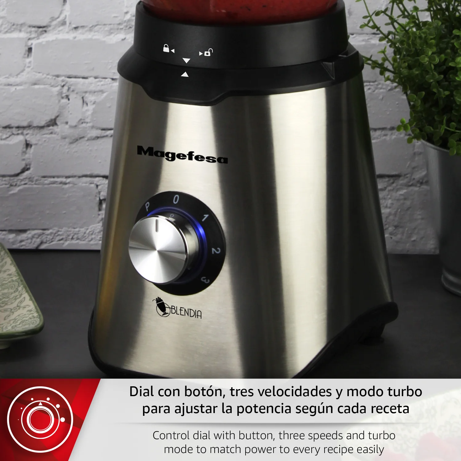 CAPACIDAD ÓPTIMA: La batidora de vaso BLENDIA de MAGEFESA cuenta con una jarra de 1,5 L con tapa que permite procesar grandes cantidades de alimentos sin riesgo de derrames. Ideal para familias o quienes preparan varias raciones de una sola vez.