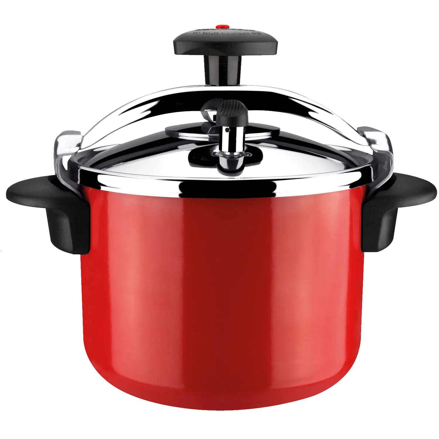La CASTELL ROJA olla a presión de MAGEFESA, está compuesta por una tapa de acero inoxidable y cuerpo con recubrimiento cerámico que contiene un núcleo de acero que distribuye el calor rápidamente, reteniéndolo mucho más tiempo, asegurando unas propiedades magníficas de cocción y un gran ahorro de energía hasta un 70%