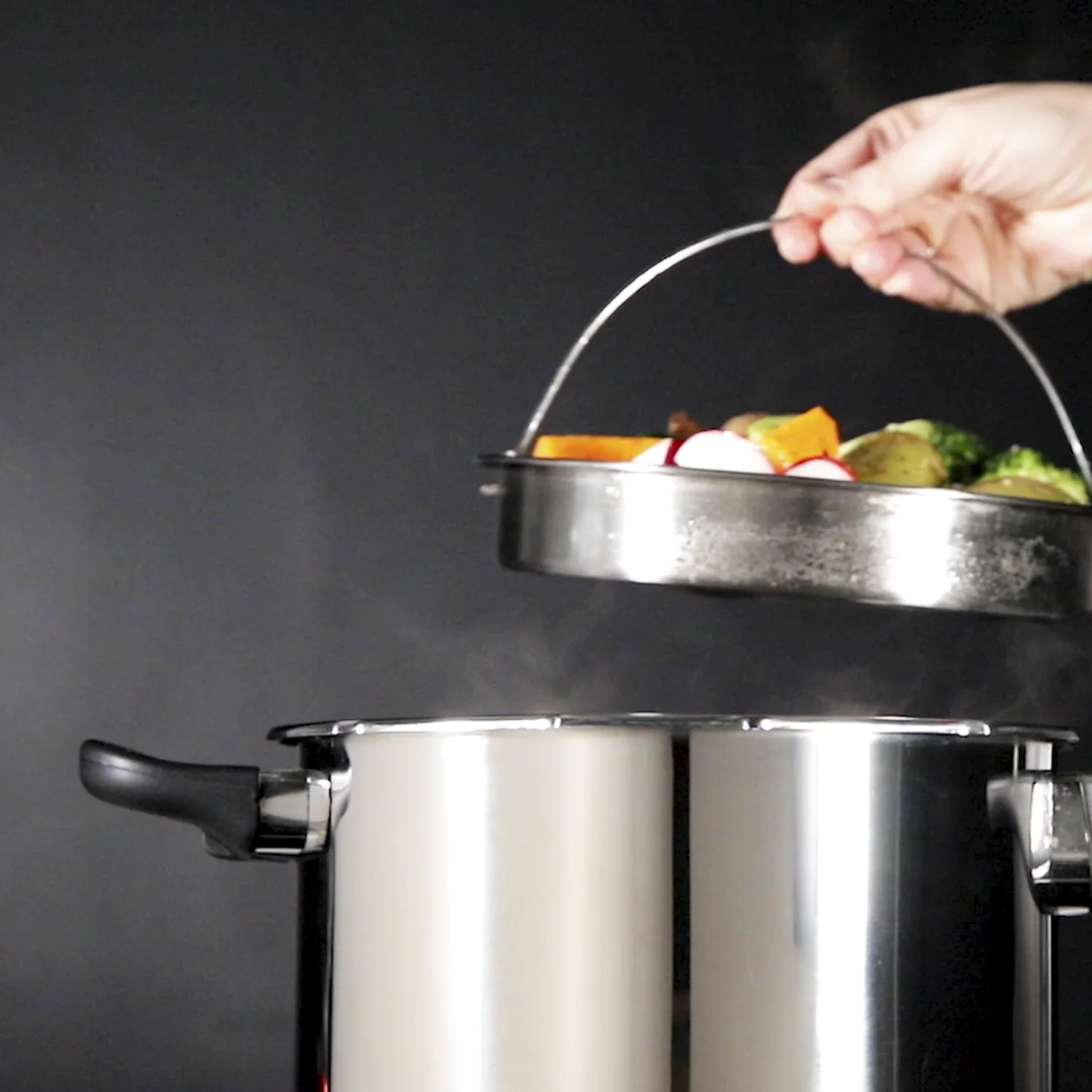 COMPATIBILIDAD UNIVERSAL: El cestillo perforado de acero inoxidable de MAGEFESA es compatible con cualquier modelo de olla express de 22 cm de diámetro o superior. Asimismo, incorpora un soporte trípode que permite elevar el cestillo de la base y una cocción al vapor uniforme.