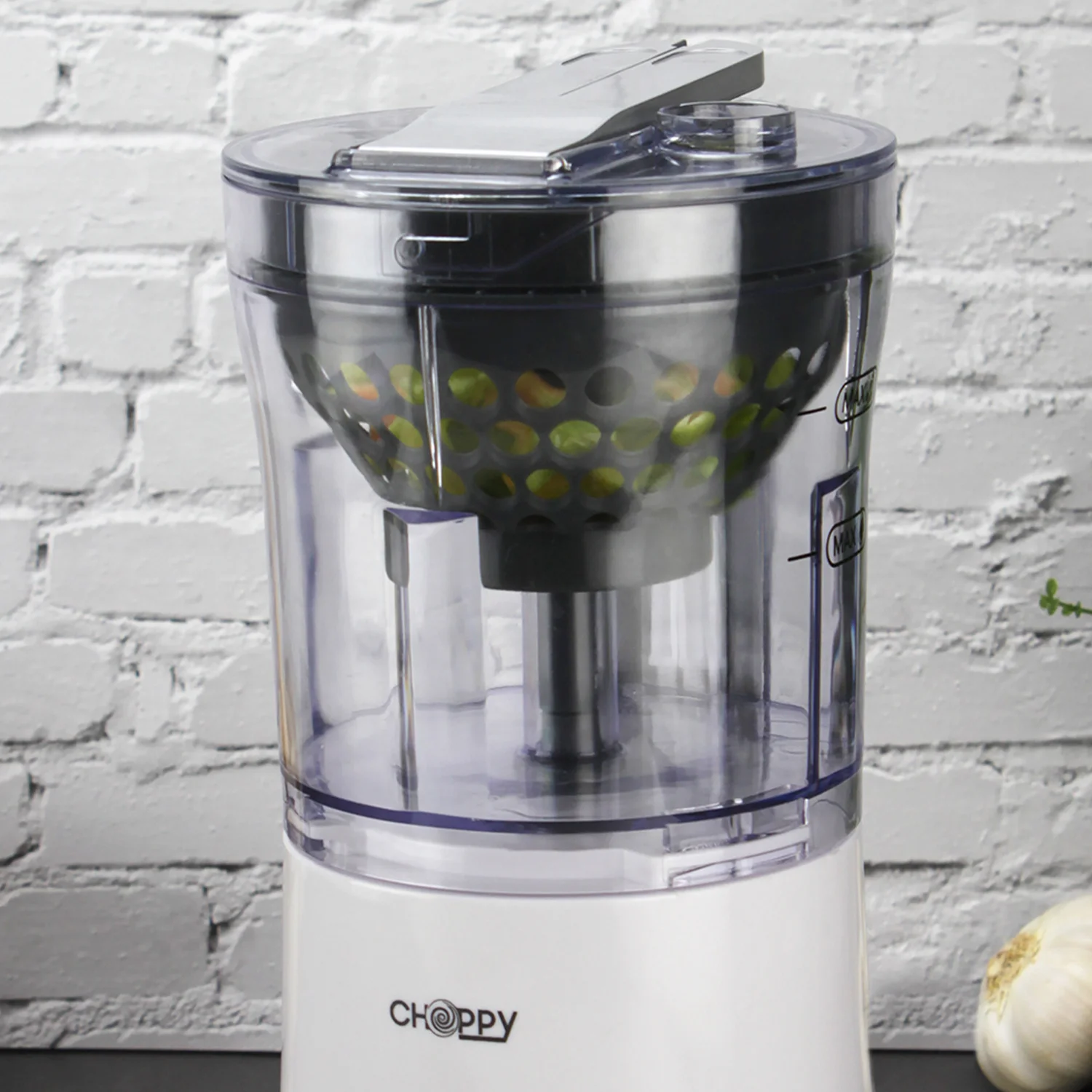 CHOPPY Picadora de 500W que Incluye Bol y Tapa Transparente, Equipada con Cuchillas Dobles de Acero Inoxidable y Alimentador para Echar Aceite