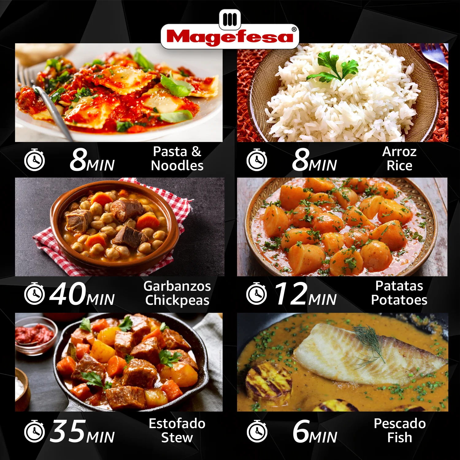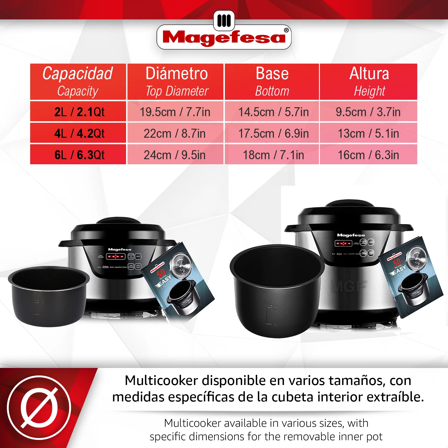 EFICIENCIA MÁXIMA: Gracias a la tecnología aplicada en la MAGEFESA EASY EXPRESS olla a presión eléctrica se reduce el tiempo de preparación hasta en un 70%, combinando vapor, calor y presión para lograr platos deliciosos en menos tiempo.