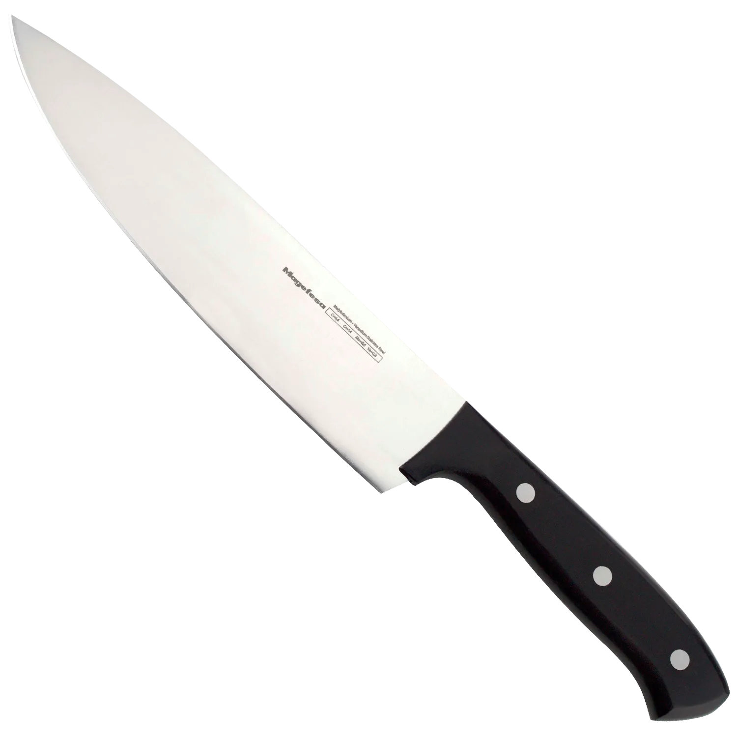 Descubre el MAGEFESA FILO cuchillo de cocina chef de acero inoxidable diseñado para ofrecer precisión, resistencia y confort en cada corte. Fabricado para garantizar una larga vida útil y un rendimiento fiable tanto en cocinas domésticas como profesionales. Su hoja permite realizar cortes limpios y exactos, ideal para preparar verduras en juliana, limpiar carnes, filetear pescados y afrontar múltiples técnicas culinarias con total seguridad.