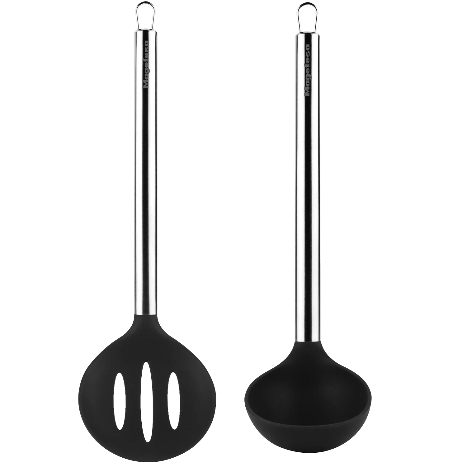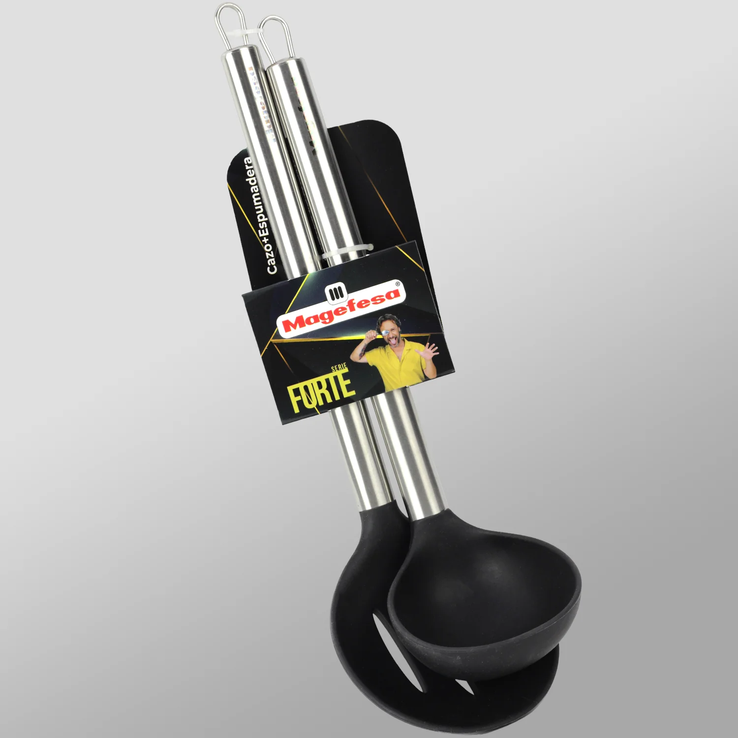 Eleva tu forma de cocinar con el MAGEFESA FORTE set de 2 utensilios de cocina, diseñado para ofrecer resistencia, seguridad y estilo en el uso diario. Fabricados en acero inoxidable 18/10 de alta calidad, soportan altas temperaturas, resisten la oxidación y garantizan un rendimiento duradero. Sus puntas de silicona alimenticia protegen las superficies antiadherentes y facilitan la limpieza, para que cocines con total tranquilidad y sin complicaciones.
