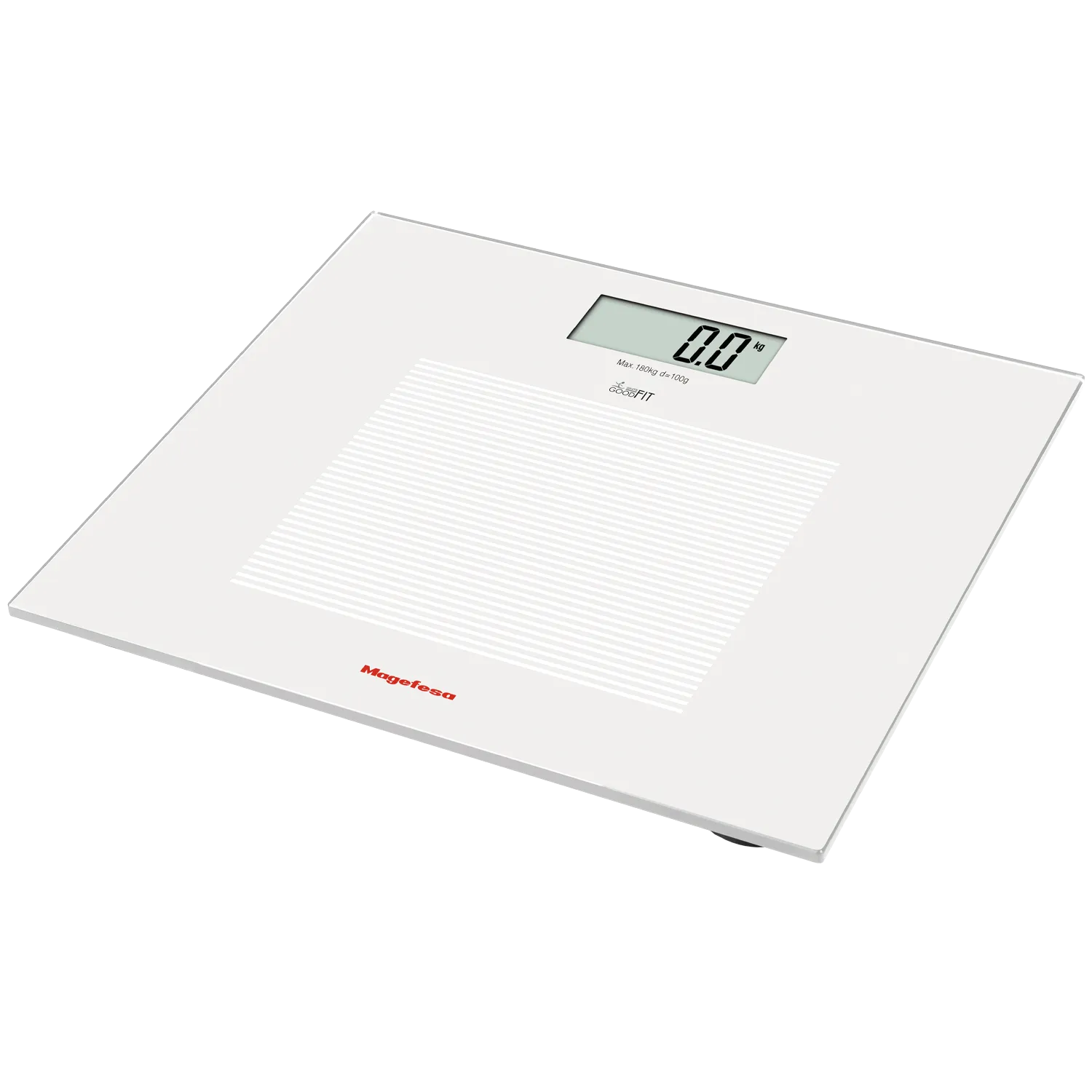 Descubre la MAGEFESA GOODFIT báscula de baño blanca y controla tu peso con total precisión y comodidad cada día. Gracias a su avanzado sistema de sensores de alta precisión, ofrece mediciones fiables con una gradación de 0,1 kg y una capacidad de hasta 180 kg, adaptándose a un amplio rango de usuarios. Su elegante plataforma de cristal templado de 5 mm combina resistencia y diseño moderno, mientras que la base antideslizante garantiza una estabilidad óptima durante cada uso.