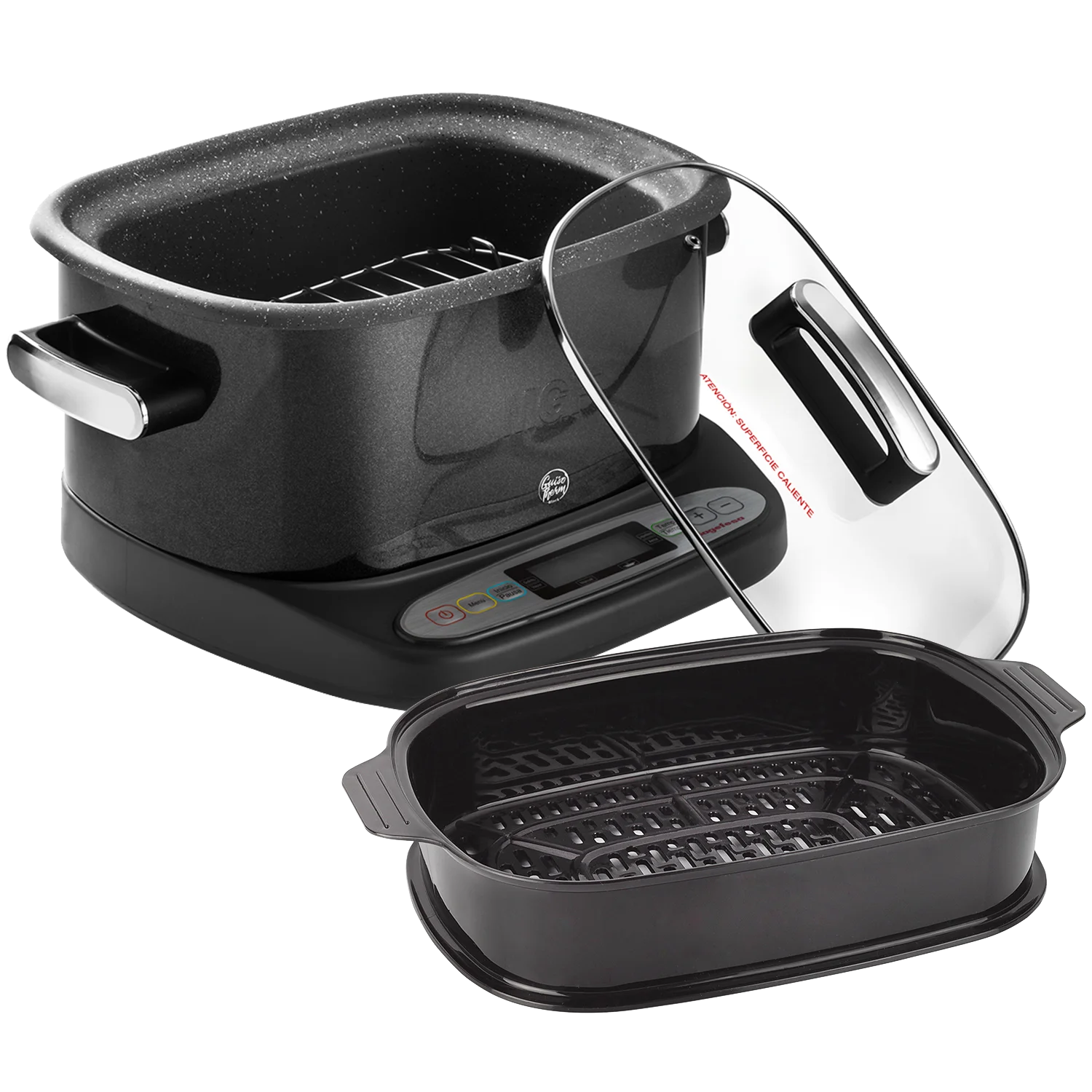 PRECISIÓN TOTAL: Observa el proceso sin levantar la tapa gracias al vidrio templado con salida de vapor. Ajusta fácilmente tiempo y temperatura desde su pantalla LCD y consigue resultados perfectos en cada plato. Toma el control y cocina con precisión y comodidad.