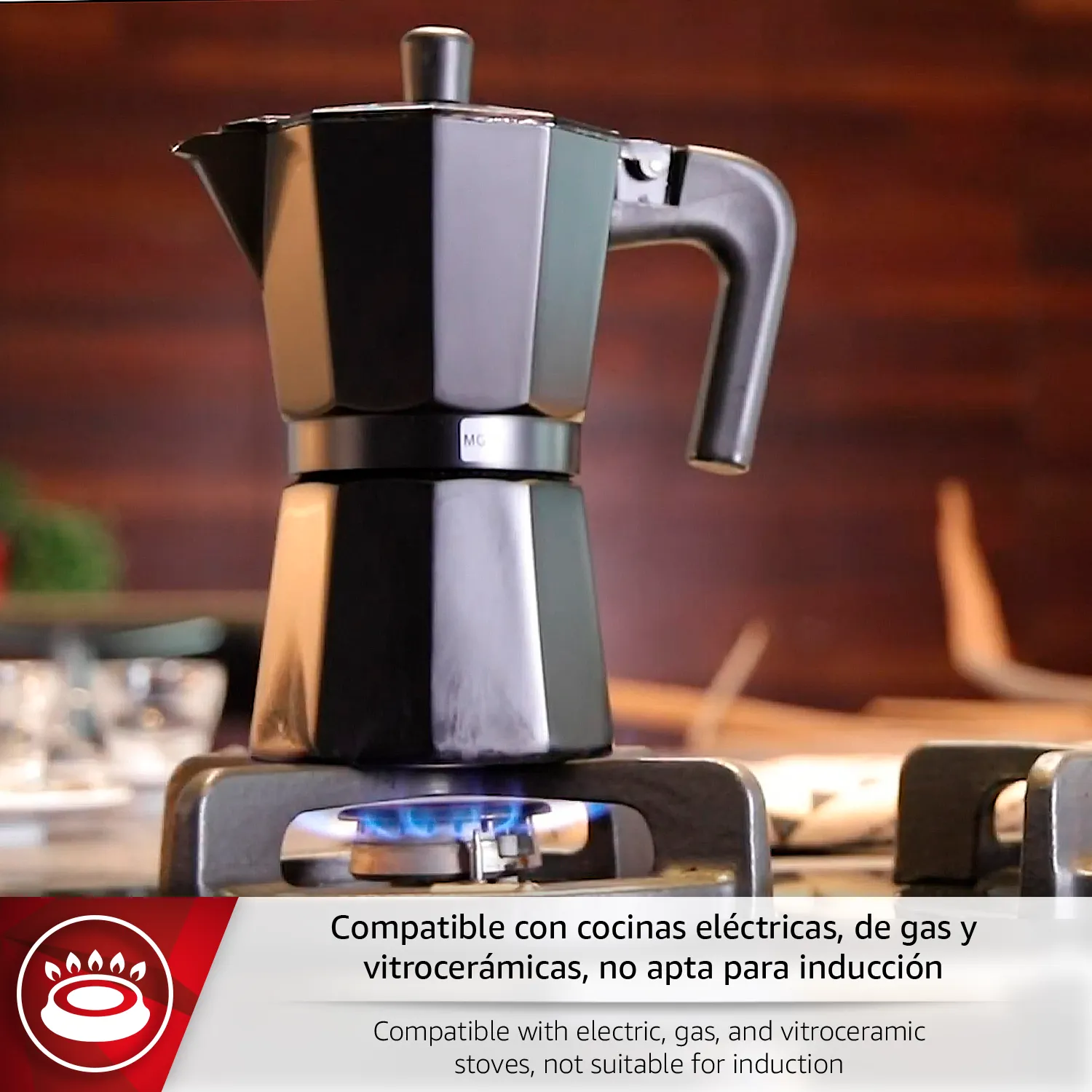 La cafetera italiana KENIA es apta para cocinas eléctricas, gas y vitrocerámicas
