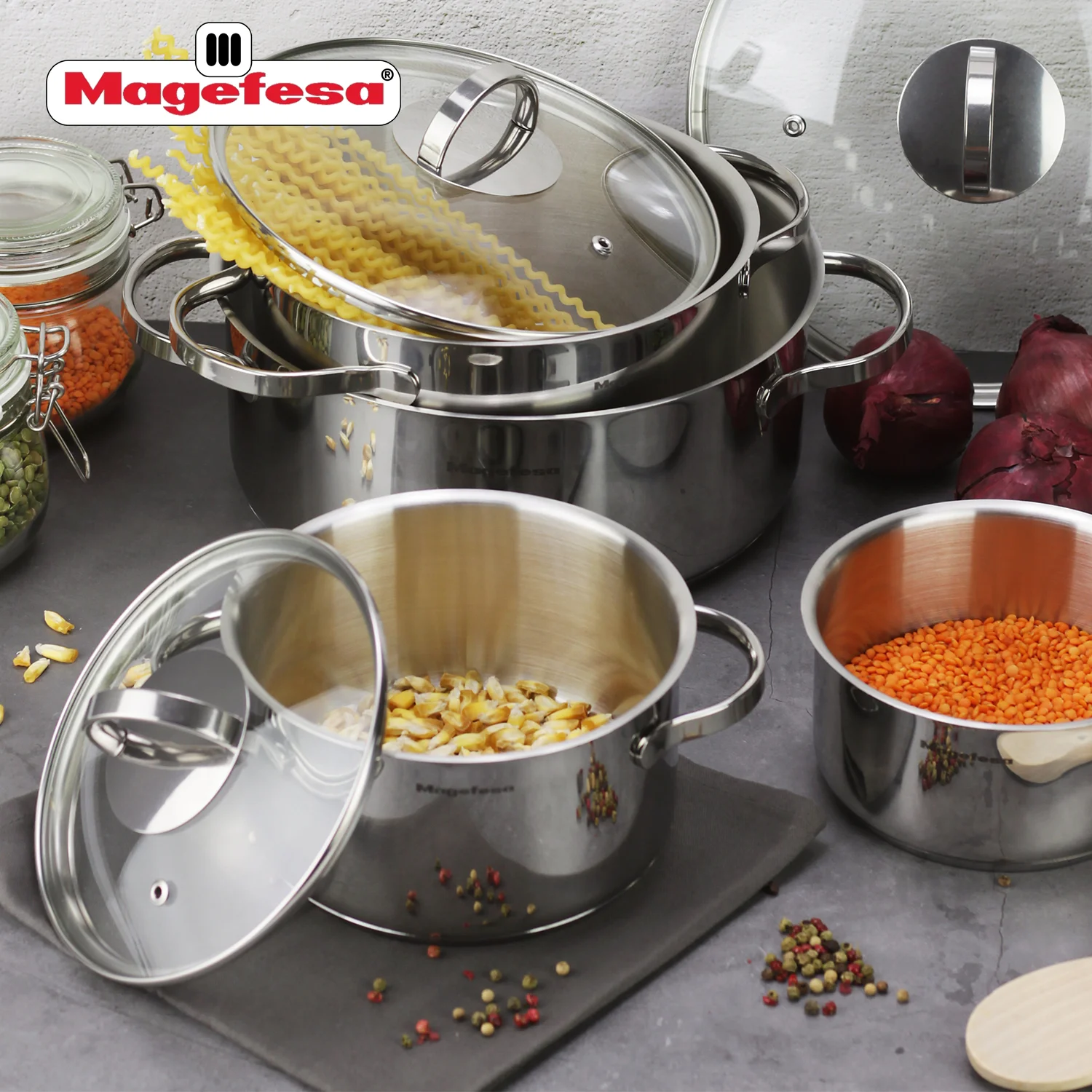 MATERIALES RESISTENTES: La MAGEFESA MAG batería de cocina está diseñada íntegramente en acero inoxidable de gran calidad, fabricadas con materiales extremadamente resistentes los cuales han pasado las más exigentes pruebas de calidad y durabilidad.