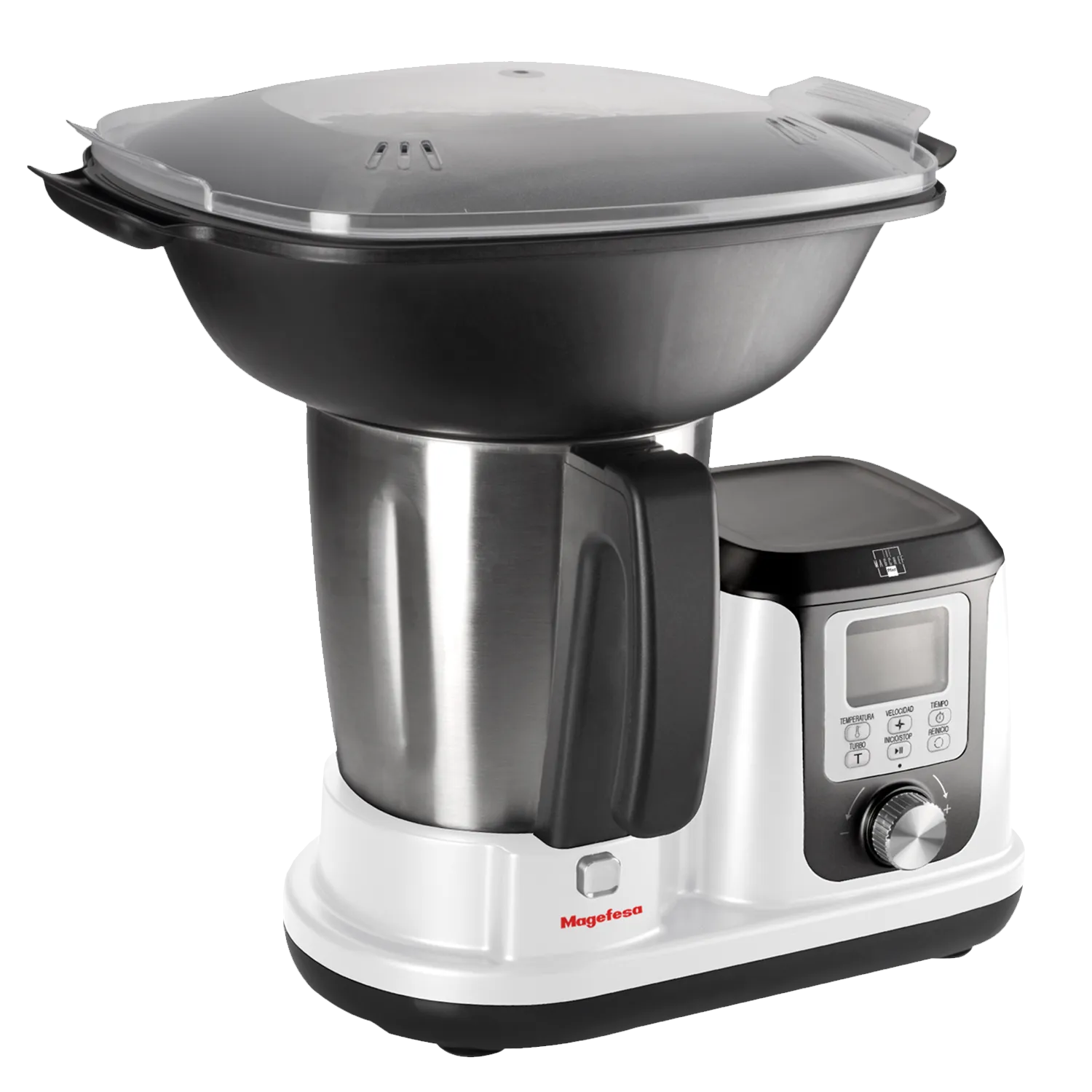 Descubre el MAGEFESA MAGCHEF WHITE PLUS robot de cocina lleva tu creatividad culinaria al siguiente nivel. Con 23 funciones, te permite trocear, picar, triturar, batir, amasar, cocinar, hervir, mantener caliente y mucho más, ofreciendo infinitas posibilidades en la cocina. Su accesorio vaporera facilita preparaciones más saludables, con menos grasa y máximo sabor.