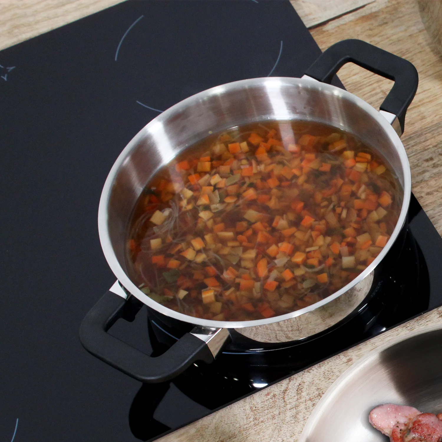 CALOR UNIFORME: La excelente conductividad térmica del acero inoxidable 18/10 de la cacerola garantiza que tus alimentos se cocinen de manera homogénea. Olvídate de puntos calientes y logra resultados profesionales en tus recetas, desde guisos hasta salsas delicadas, con la seguridad de un calor constante y controlado.