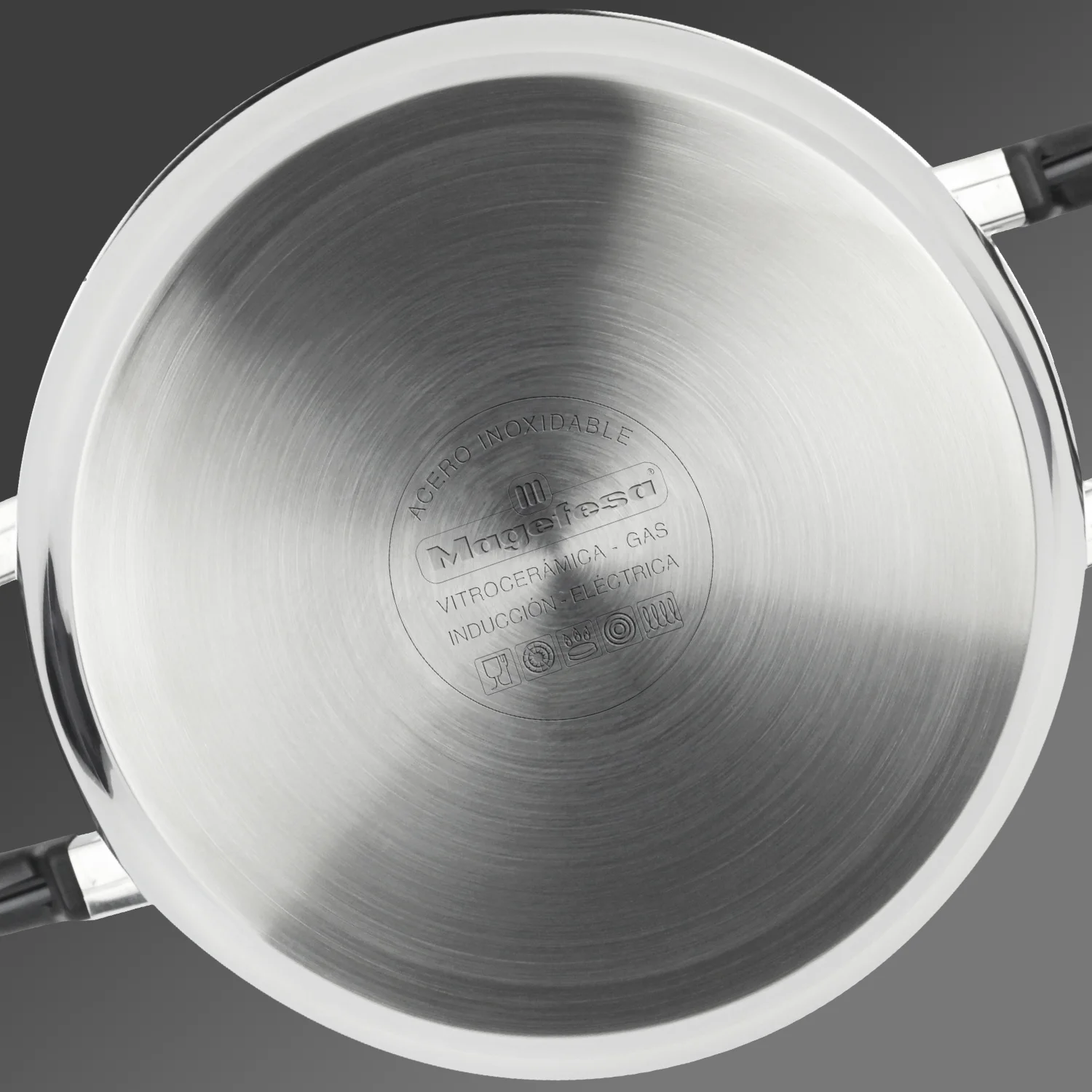 AGARRE SEGURO: Con asas ergonómicas de baquelita resistentes al calor, la MAGNIFIC cacerola de acero inoxidable de MAGEFESA ofrece un agarre firme y seguro sin riesgo de quemaduras. Transporta y sirve tus platos favoritos con total tranquilidad, disfrutando de la comodidad de un diseño pensado para tu seguridad en la cocina.V