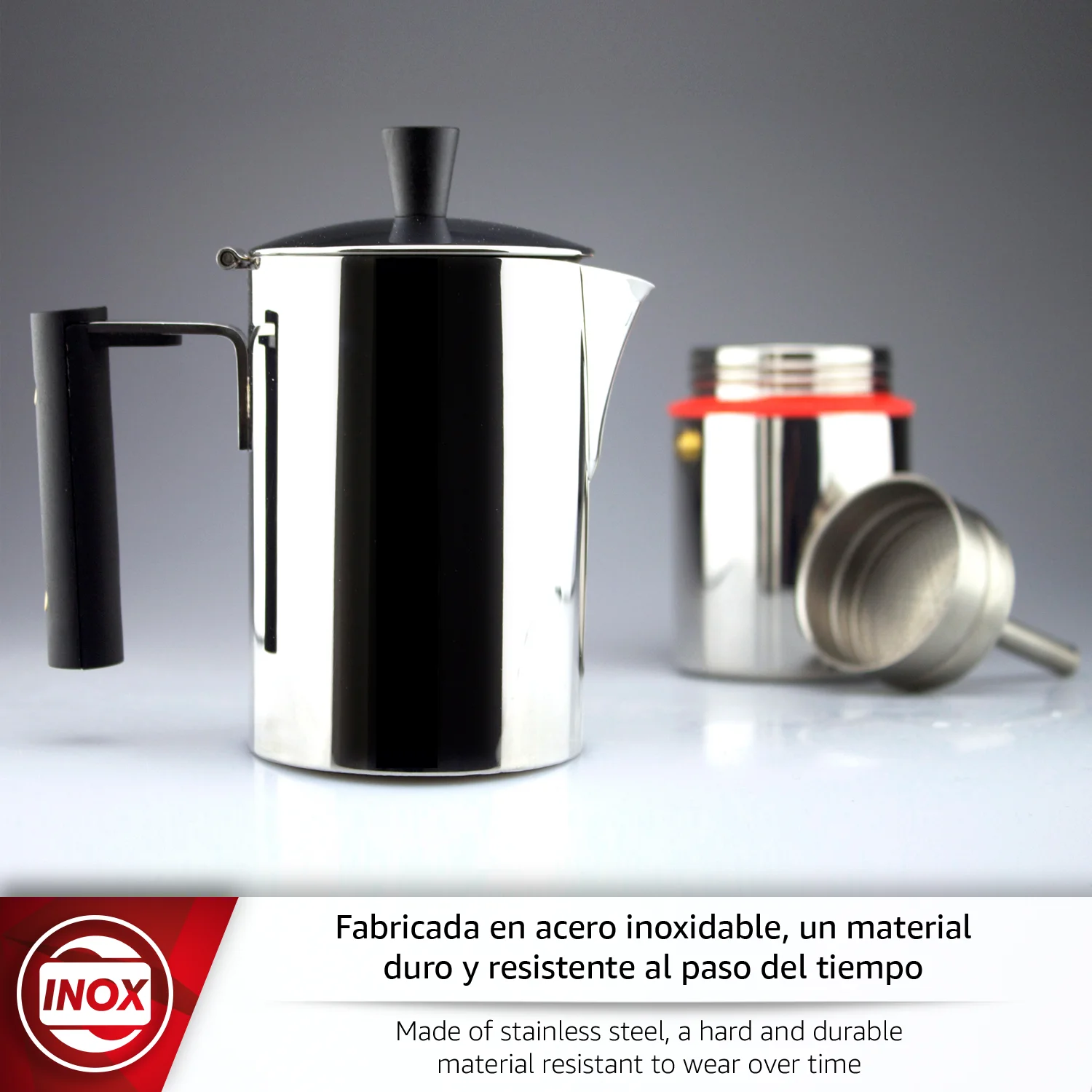Descubre la MAGEFESA NOVA CAPRI cafetera italiana y disfruta de un café perfecto cada día con la máxima calidad y eficiencia. Fabricada íntegramente en acero inoxidable de alta resistencia, ha superado exigentes pruebas de durabilidad para garantizar un uso prolongado y un rendimiento óptimo en el día a día.