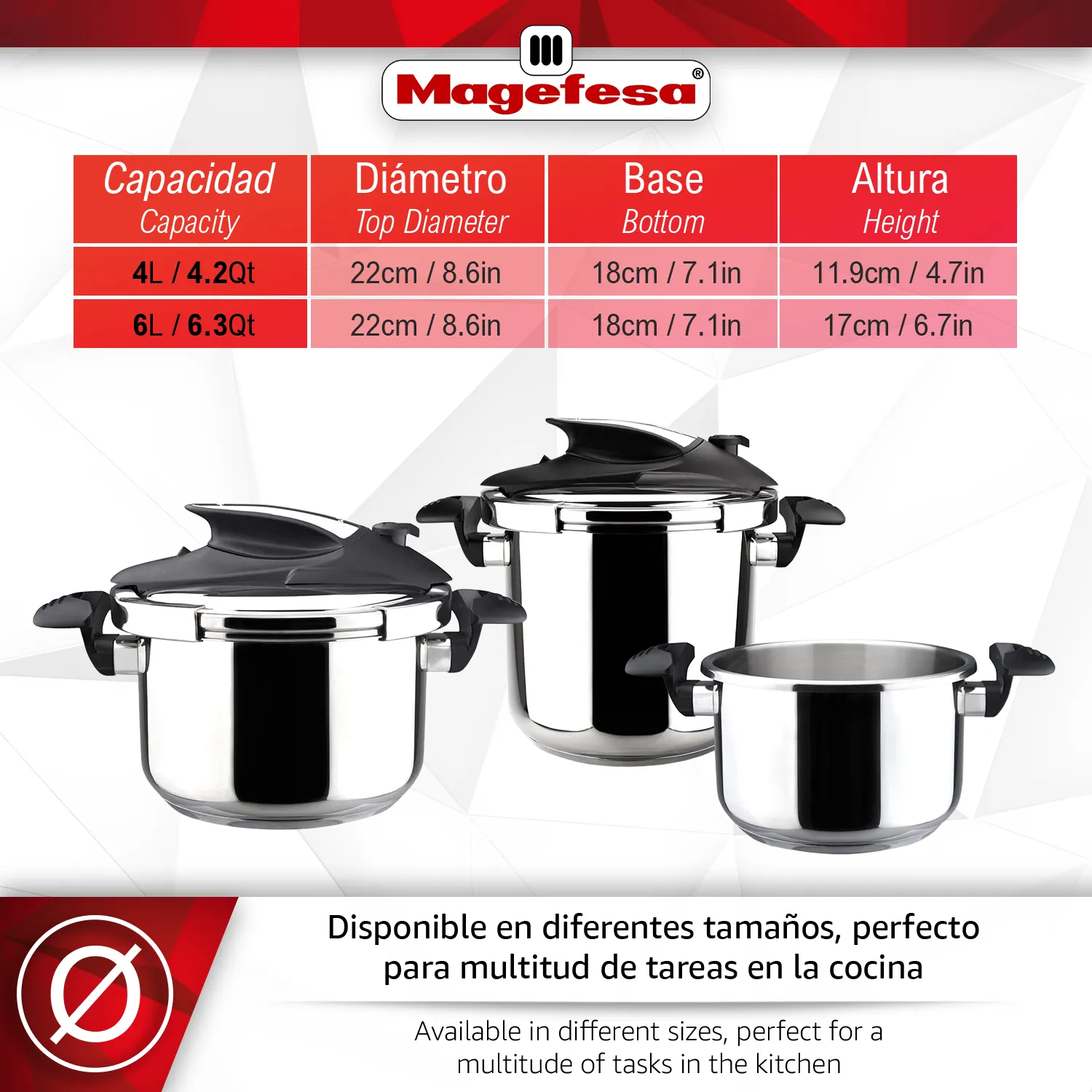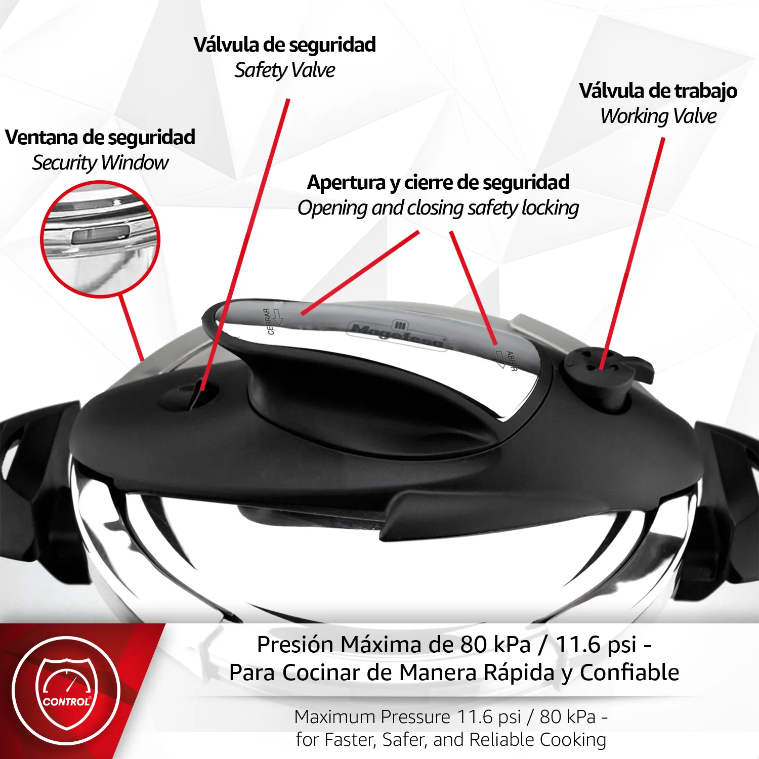 NOVA Olla a Presión Súper Rápida Fabricada en Acero Inoxidable 18/10, Cuenta con un Cierre Sencillo y es Apta para Cualquier Cocina
