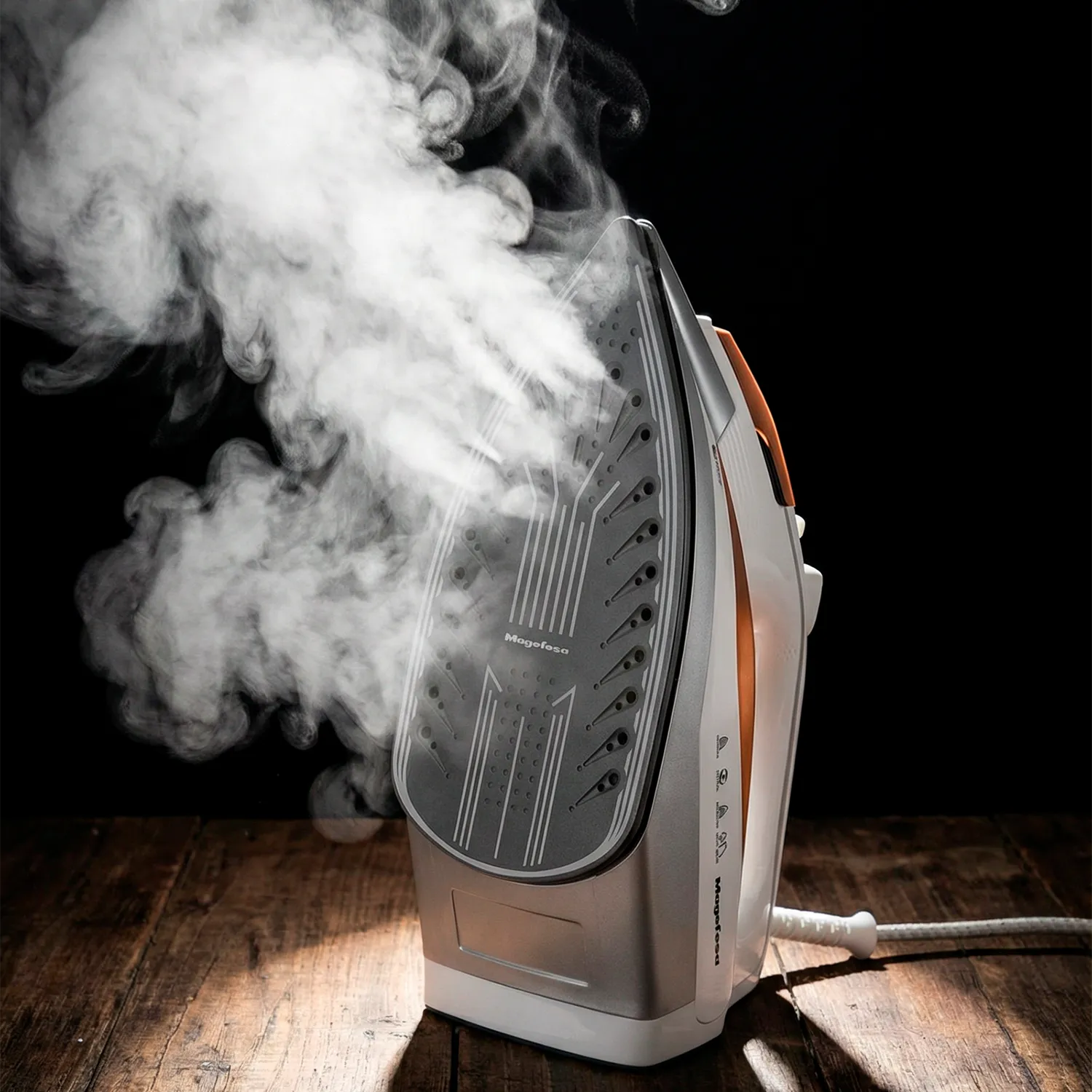 Optimiza tu planchado diario con la MAGEFESA QUERCUS plancha de vapor y consigue resultados impecables en menos tiempo. Con 2500 W de potencia, se calienta rápidamente para ofrecer un planchado ágil y eficiente, combinando función en seco y vapor constante de 30 g/min, vapor vertical y golpe de vapor para eliminar hasta las arrugas más rebeldes.