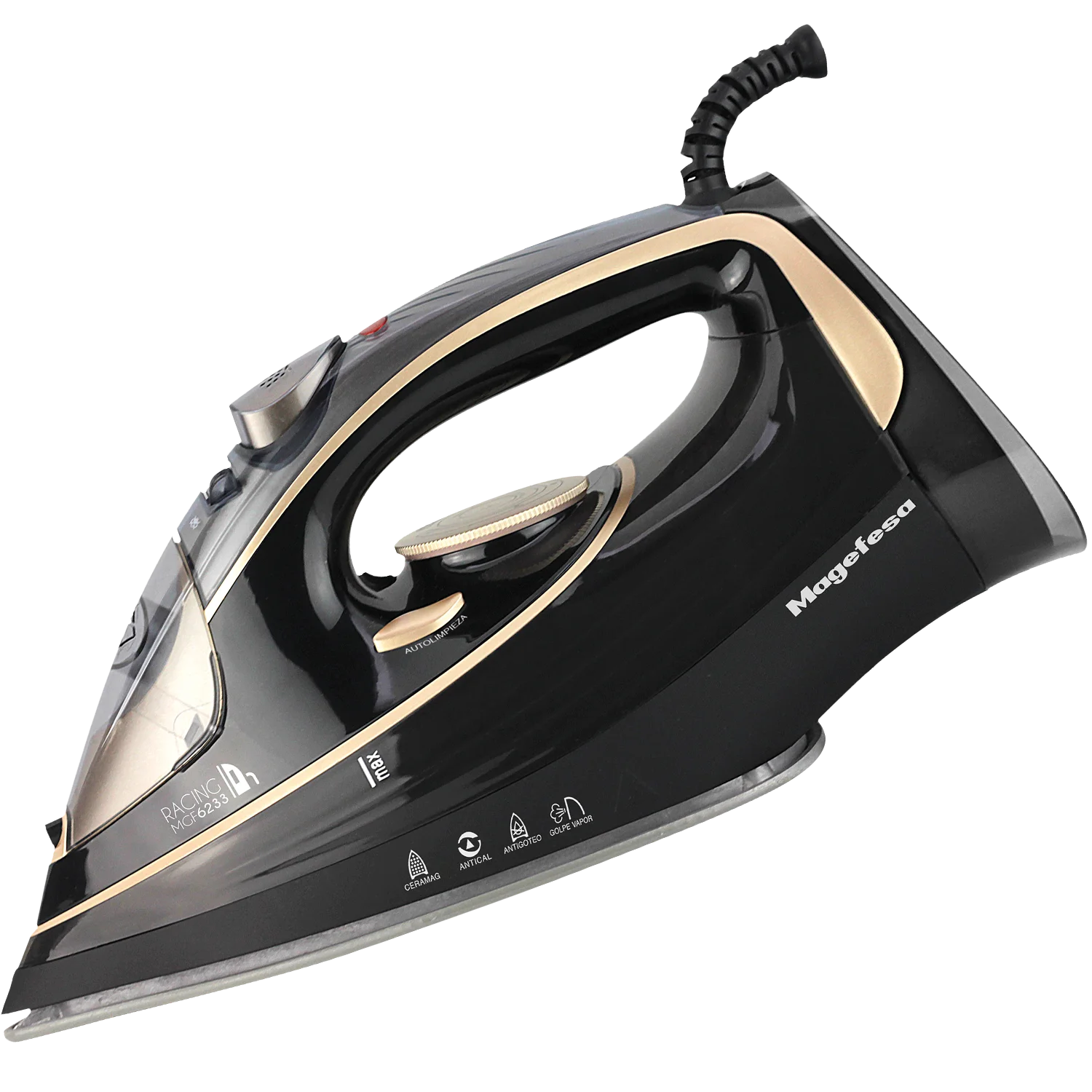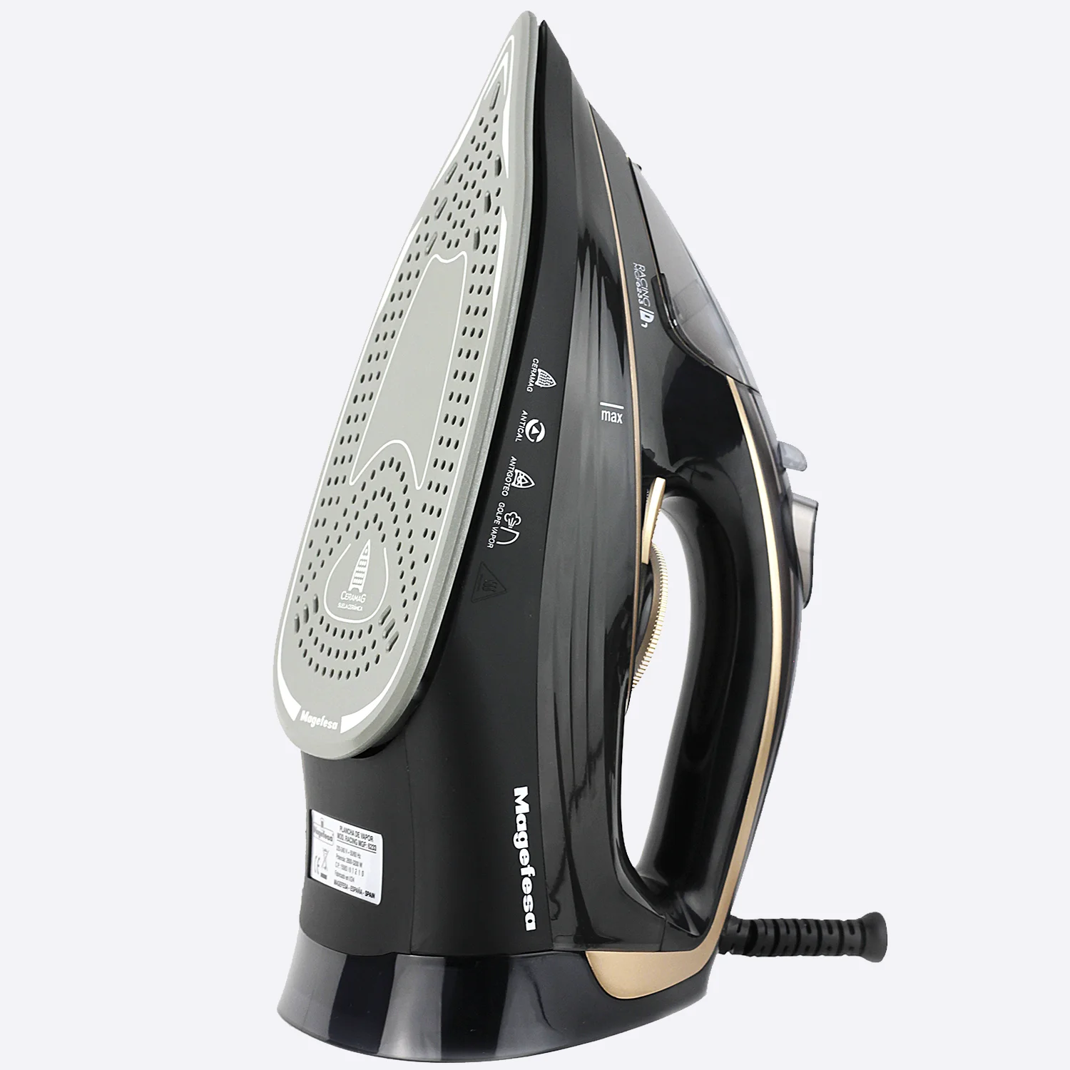 Renueva tu forma de planchar con la RACING plancha de vapor de MAGEFESA y consigue resultados profesionales en casa. Su suela cerámica ultrasuave se desliza con facilidad sobre cualquier tejido, eliminando arrugas con rapidez y alcanzando zonas difíciles como cuellos, botones o costuras gracias a su punta de precisión. Con 2600 W de potencia, alcanza la temperatura ideal en segundos y ofrece un potente golpe de vapor junto a la función de planchado vertical, perfecta para prendas colgadas, cortinas o trajes.