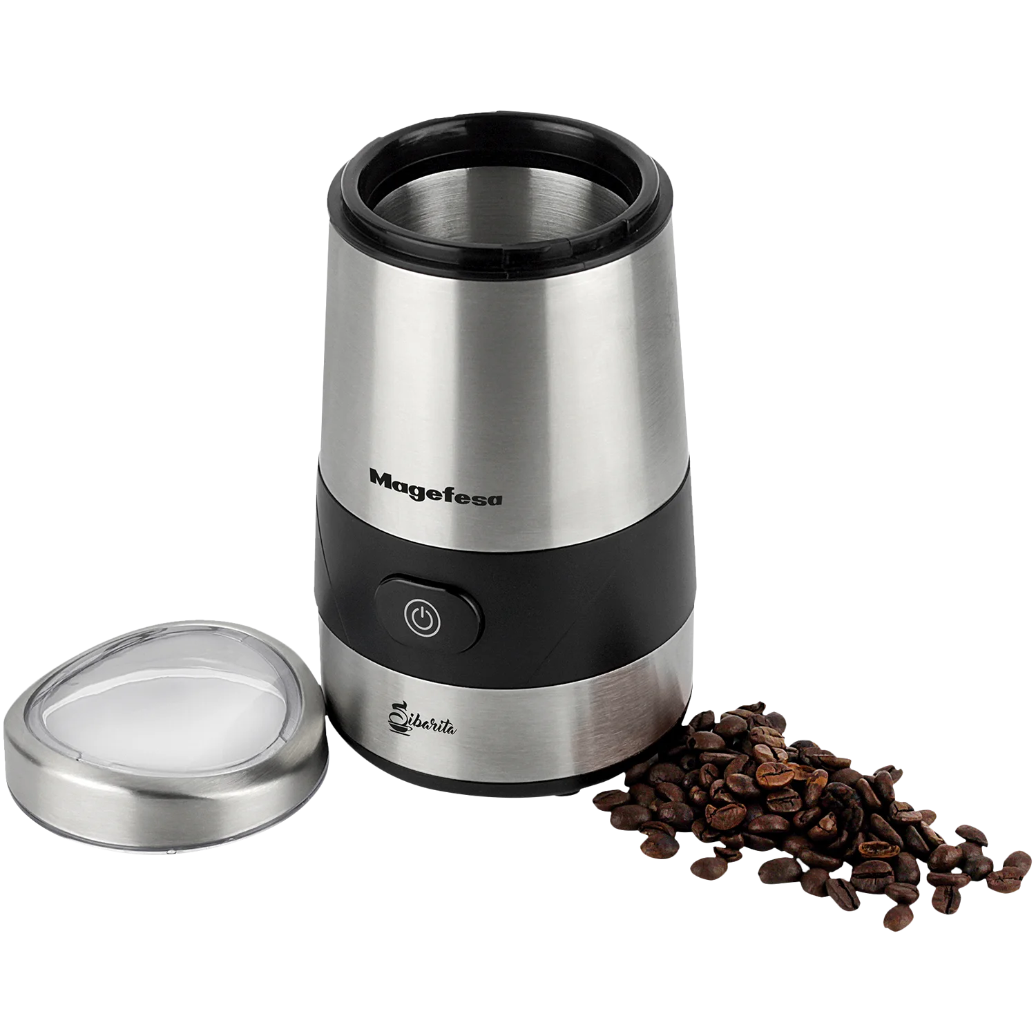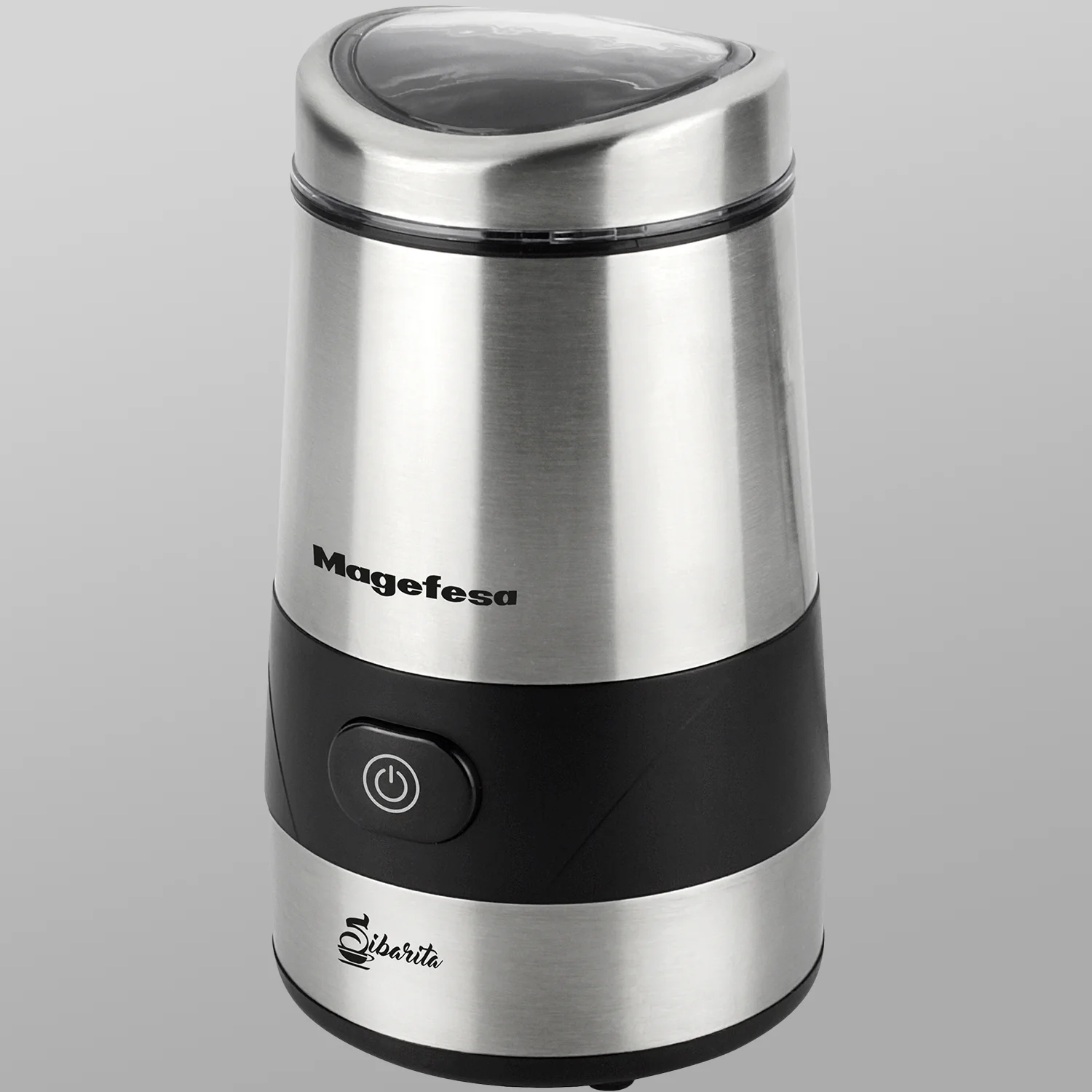 Disfruta del café recién molido en casa con el MAGEFESA SIBARITA molinillo de café eléctrico que potencia al máximo el aroma y sabor de tus granos. Su elegante estructura de acero inoxidable combina resistencia, higiene y durabilidad, mientras el motor de 200 W ofrece un molido rápido, potente y uniforme, perfecto para espresso, cafetera italiana, filtro o prensa francesa.