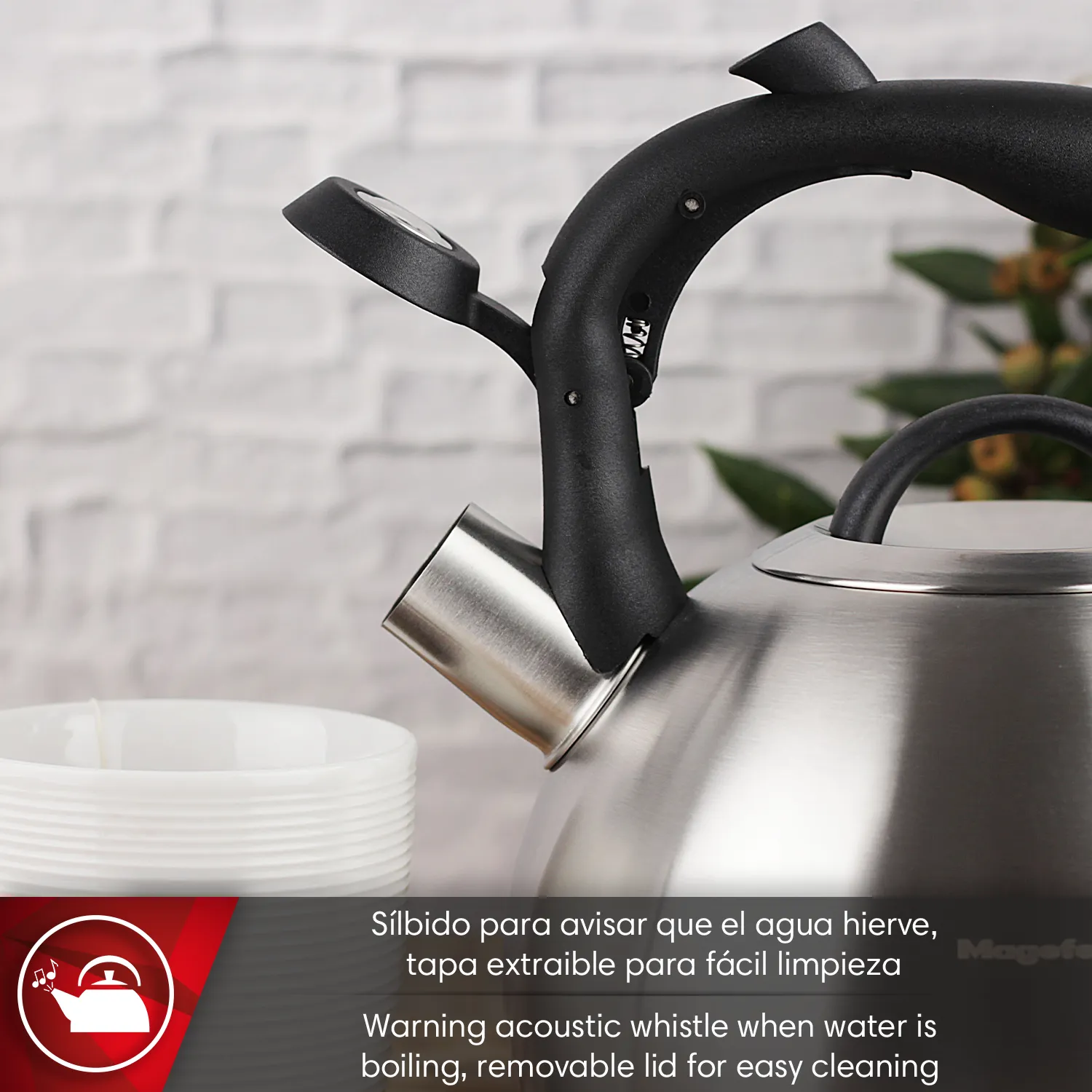 Cuenta con señal acústica que avisa del punto de ebullición del agua para mayor seguridad.