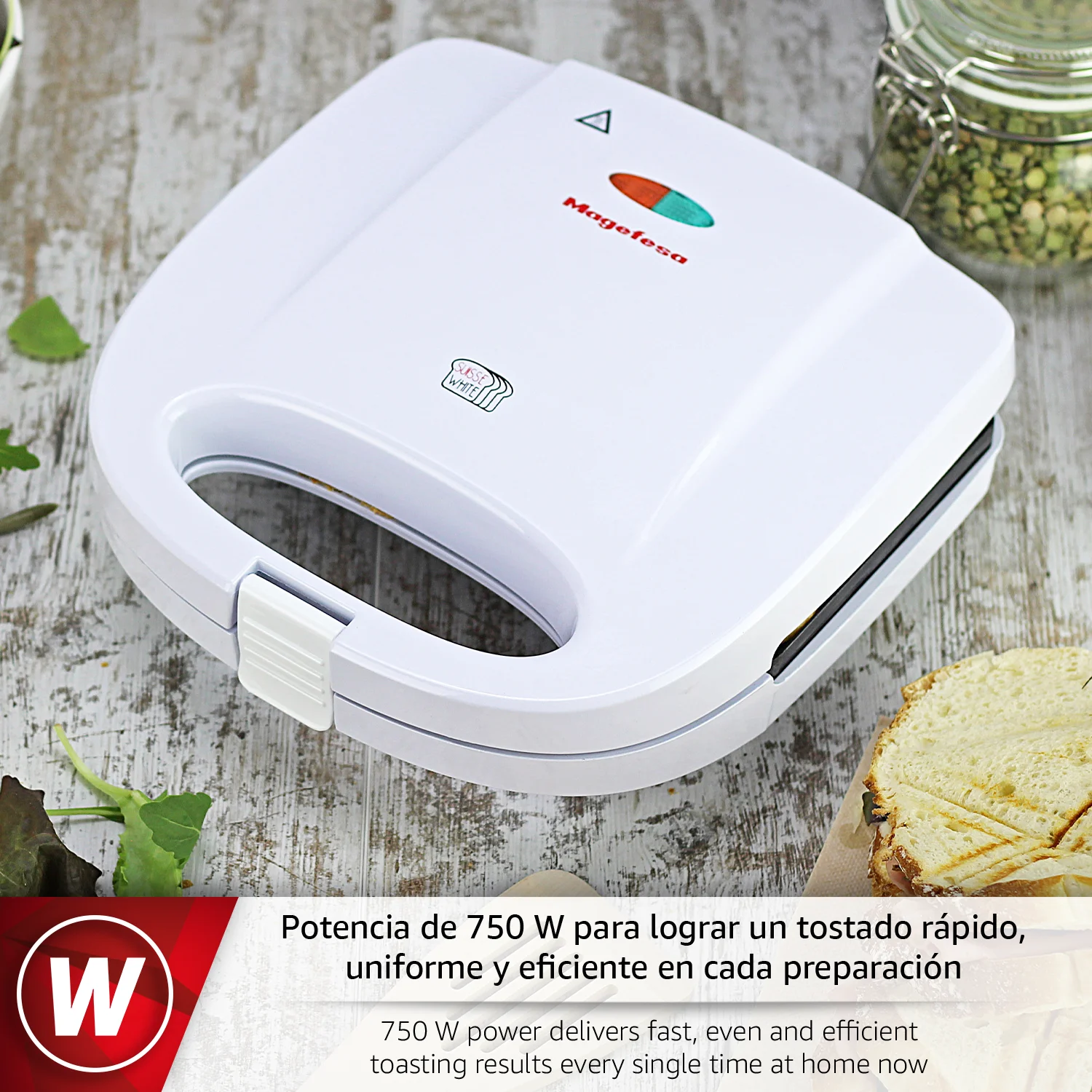 TOSTADO RÁPIDO: Disfruta de sándwiches perfectos en minutos con 750 W de potencia. La MAGEFESA SUISSE WHITE sandwichera blanca asegura un tostado uniforme y un calentamiento eficiente, ideal para tus desayunos o comidas rápidas sin esperar.