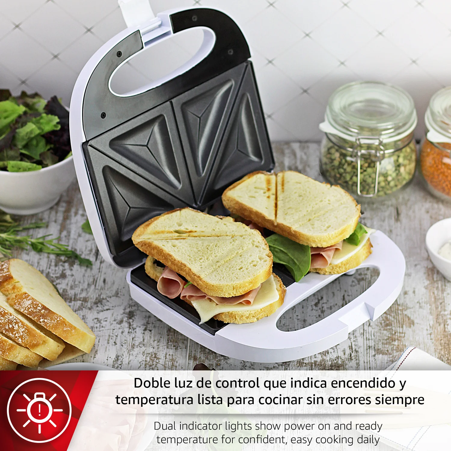 AHORRO DE TIEMPO: Cocina rápidamente dos sándwiches gracias a su capacidad doble. Ahorra tiempo y espacio mientras disfrutas de un desayuno delicioso o una merienda lista en pocos minutos.