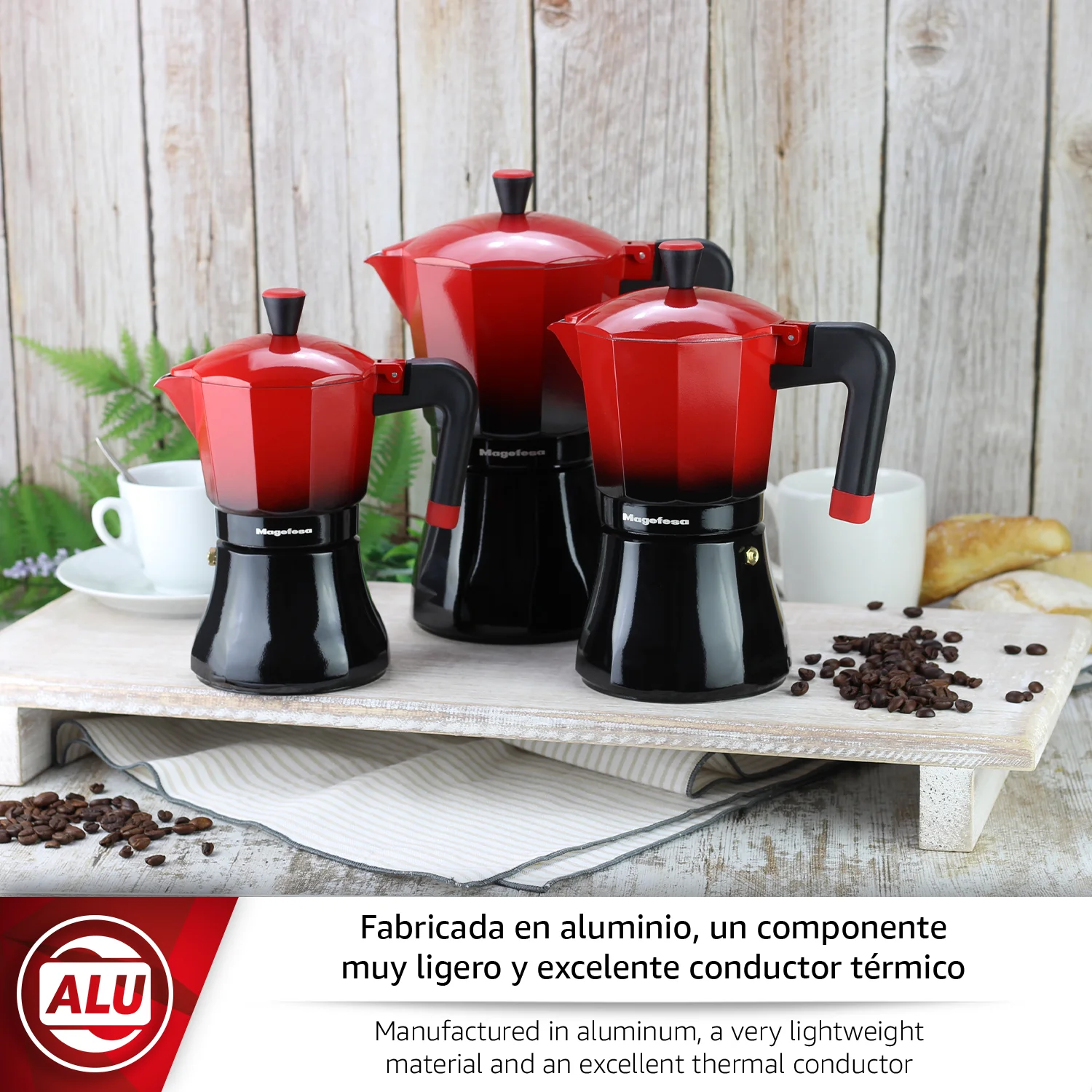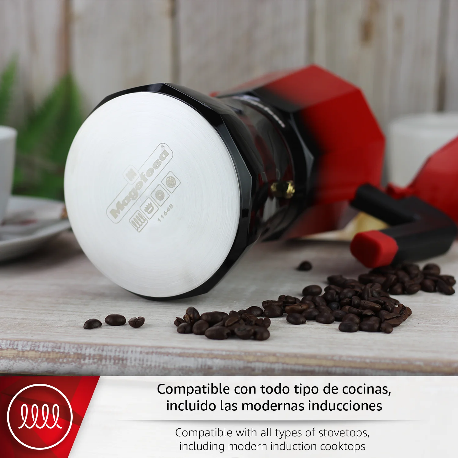 CUALQUIER TIPO DE COCINA: La TRADICIONAL cafetera italiana de MAGEFESA es compatible con cocinas de gas, eléctricas, vitrocerámicas e inducción, se adapta a cualquier tipo de cocina, lo que la convierte en una opción versátil y práctica para disfrutar del mejor café en casa.