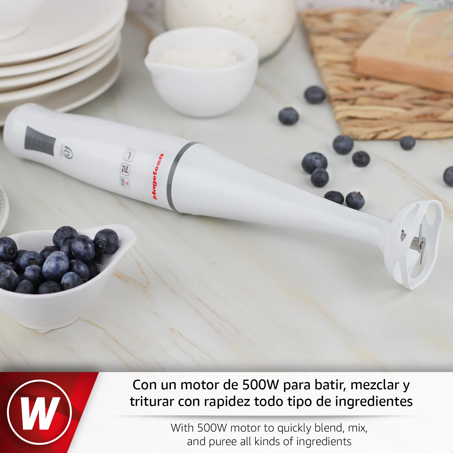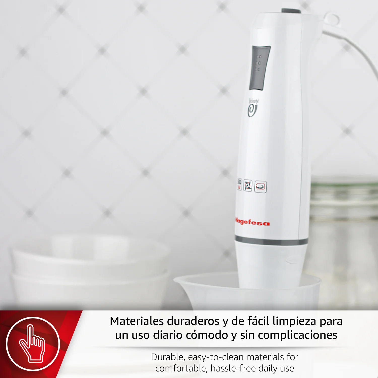 La VELOUTE batidora de mano de MAGEFESA combina potencia, comodidad y precisión para facilitar tu día a día en la cocina. Sus 500W con regulación progresiva permiten adaptar la velocidad a cada preparación, desde mezclas ligeras hasta ingredientes más duros, consiguiendo siempre texturas finas y homogéneas. Además, su funcionamiento silencioso aporta un entorno más agradable para cocinar en cualquier momento.