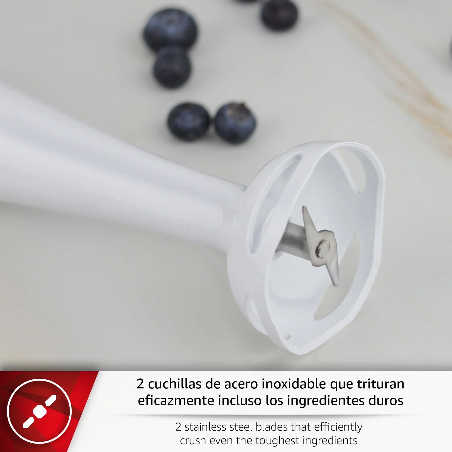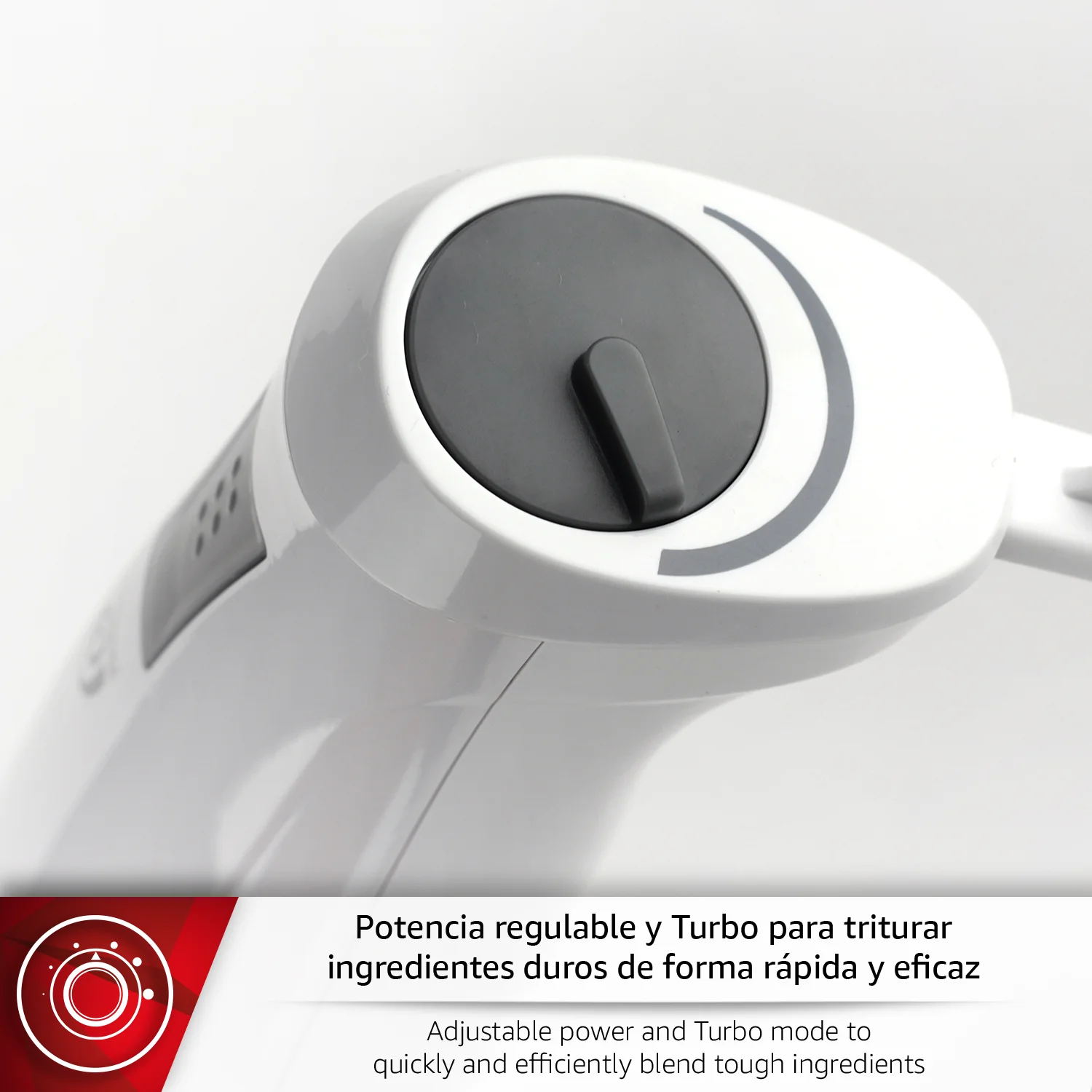 INCLUYE VASO MEDIDOR: Este práctico accesorio permite medir con exactitud líquidos y otros ingredientes, además de utilizarlo como recipiente para batir directamente. Con una capacidad ideal para preparar salsas, cremas y smoothies, se convierte en un complemento esencial para la rutina en la cocina.